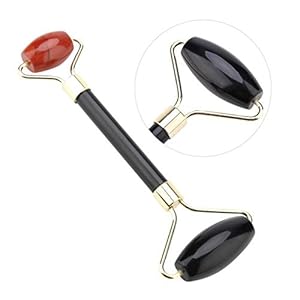 Double Head Stone Massager, Obsidian + Carbuncle Massage Roller Gepolijst oppervlak Jade Roller Skin Gym Roller voor…