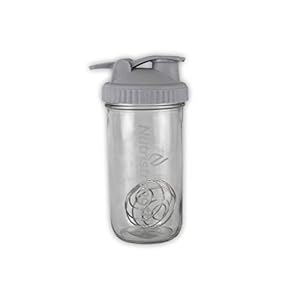 Nutristrength Proteïne Shaker Cup Waterfles – 20oz Glazen waterfles Grijs Deksel | Inclusief Wire Ball voor Smooth…