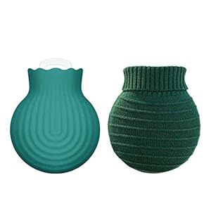 Anstore Warmwaterkruik 2 l met overtrek pluizig, warmtekruik voor nek en schouder, bedfles, nekwarmfles, groen