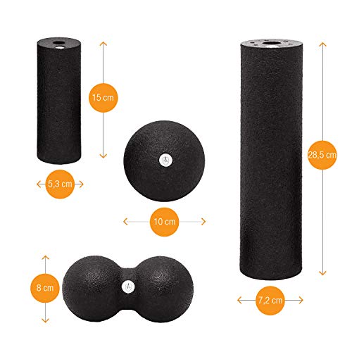 De massageset bestaat uit 4 verschillende fasciarollen voor fasciale massage en is ideaal voor yoga, pilates, crossfit, fitness of bodybuilding. Enerzijds ondersteunt