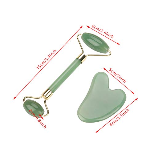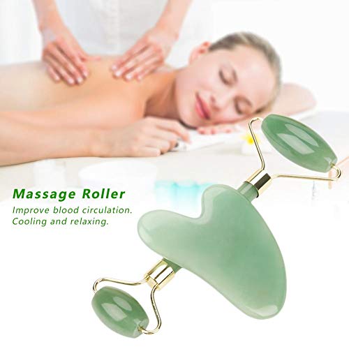 Specification: Jade Roller, Natuurlijke Dubbele Kop Groene Aventurijn Jade Stone Roller & Sloopplaat Gezichtsmassage Tool Kit voor…
