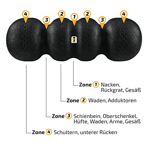 Nieuwe schuimroller met 4 ergonomische zones om zich aan het lichaam aan te passen. In tegenstelling tot klassieke platte rollen heeft dit ontwerp zelfs toegang tot diepe triggerpunten die anders moeilijk te bereiken zijn. Een innovatie in zachte, diepe zelfmassage.