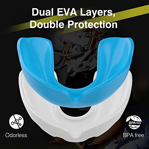 NICE BESCHERMING – Met dubbele EVA gel, biedt dubbele schokabsorptie en dubbele bescherming. Voorkom en verminder effectief schade aan tanden, bogen, lippen, gewrichten, kaken en tandvlees veroorzaakt door verschillende contactsporten zoals MMA, vechtsporten, boksen, worstelen, hockey, enz. Ideaal voor mensen die contact oefenen.