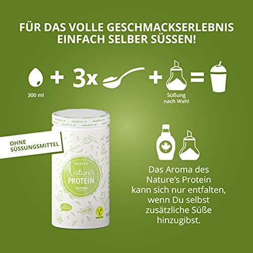 Onze Nature’s Protein wordt ook gekenmerkt door een laag suiker- en vetgehalte. Het is vrij van dierlijke ingrediënten (lactose, melkeiwit), genetische manipulatie, aspartaam en kunstmatige toevoegingen. Omdat alle essentiële aminozuren in het lichaam aanwezig zijn, wordt een optimaal aminozuurprofiel en een hoge biologische waarde bereikt. Ons proteïnepoeder ondersteunt u dus tijdens uw training – ongeacht of u spieren opbouwt of in de definitiefase zit.