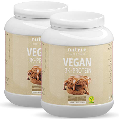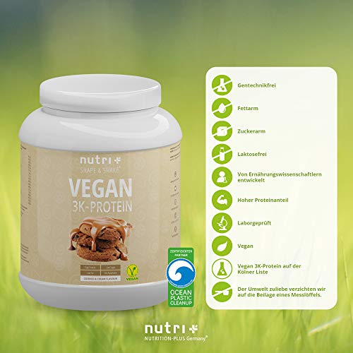 PROTEIN POWDER VEGAN Cookies & Cream 1kg – 81,9% proteïne – Nutri-Plus Shape & Shake 3k spieropbouwend proteïne…