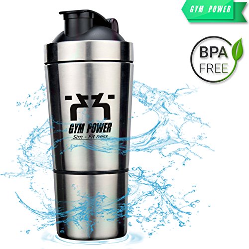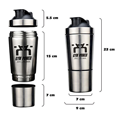 Specification: GYM POWER Eiwit Protein Shaker RVS Sport Protein Mixer Bottle met Poedercontainer Mixer Ball 600ML 200ML