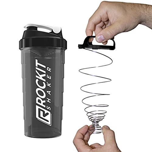 Altijd kromvrije shakes – onze gepatenteerde, in de shaker vrij schommelende, roestvrije roestvrijstalen veer – wel RockitMix. Je fitnessproteïneshakes worden vanaf nu super romig en klontervrij. RockitMix zwaait bij schudden tot op de grond en terug in het deksel – nooit meer poederresten in de shaker.