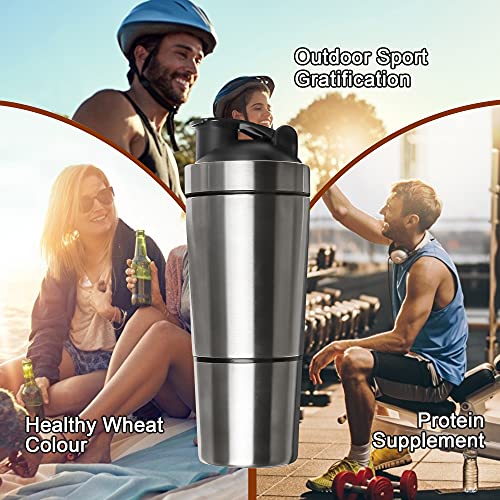 Roestvrij stalen eiwitschudbeker fles met roerkogel, duurzame fitness-bewegingsketel, lekvrij, dubbele weegschaal, 700…
