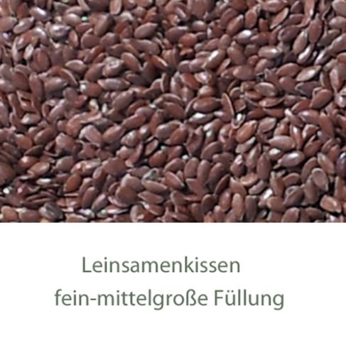 Vulling: lijnzaad is smalle, soepele circa 5 mm lange, oliehoudende bruine zaden. In verwarmde toestand heeft het lijnzaadkussen een fijne, wat notachtig olieachtige geur. De typische lijnzaadgeur. Het lijnzaadkussen is niet wasbaar.